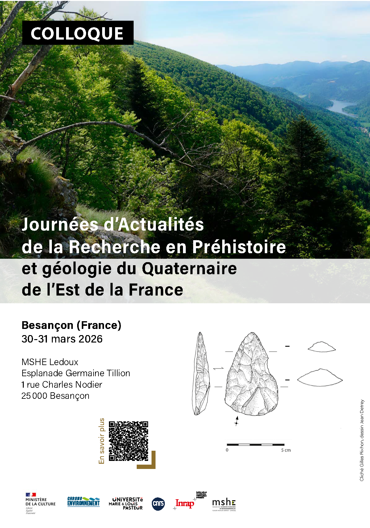 La première édition des Journées d’actualités de la recherche en Préhistoire et géologie du Quaternaire de l’Est de la France se tiendra les 30 et 31 mars 2026 à la MSHE Claude Nicolas Ledoux de Besançon (France).